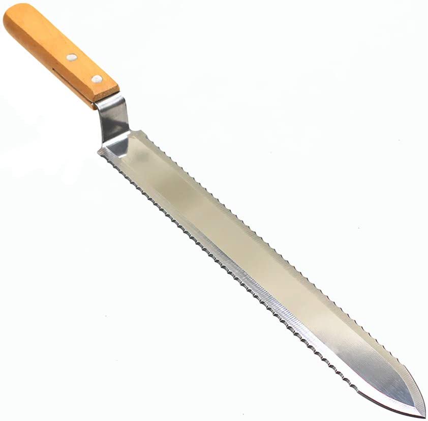 Cuchillo de colmena: El cuchillo de colmena se utiliza para cortar el sellado de cera que cubre los cuadros de la colmena, para poder extraer la miel. También se puede utilizar para retirar las propóleos y otro tipo de materiales pegajosos.